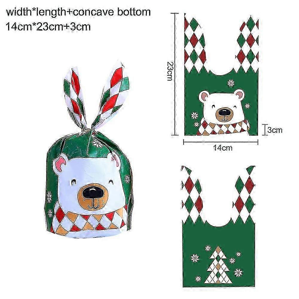50pcs Christmas Rabbit Ear Candy Bags Plastic Carton Santa Claus Snowman Candy Bags For Xmas Noel Cookies Packing Supply