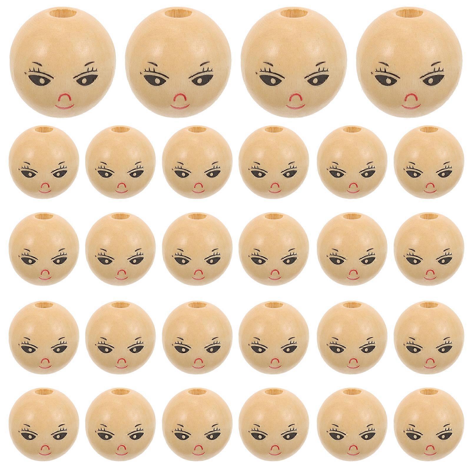 50Pcs Round Wooden Smile Face Beads Wood Loose Beads Round Spacer Beads with Hole