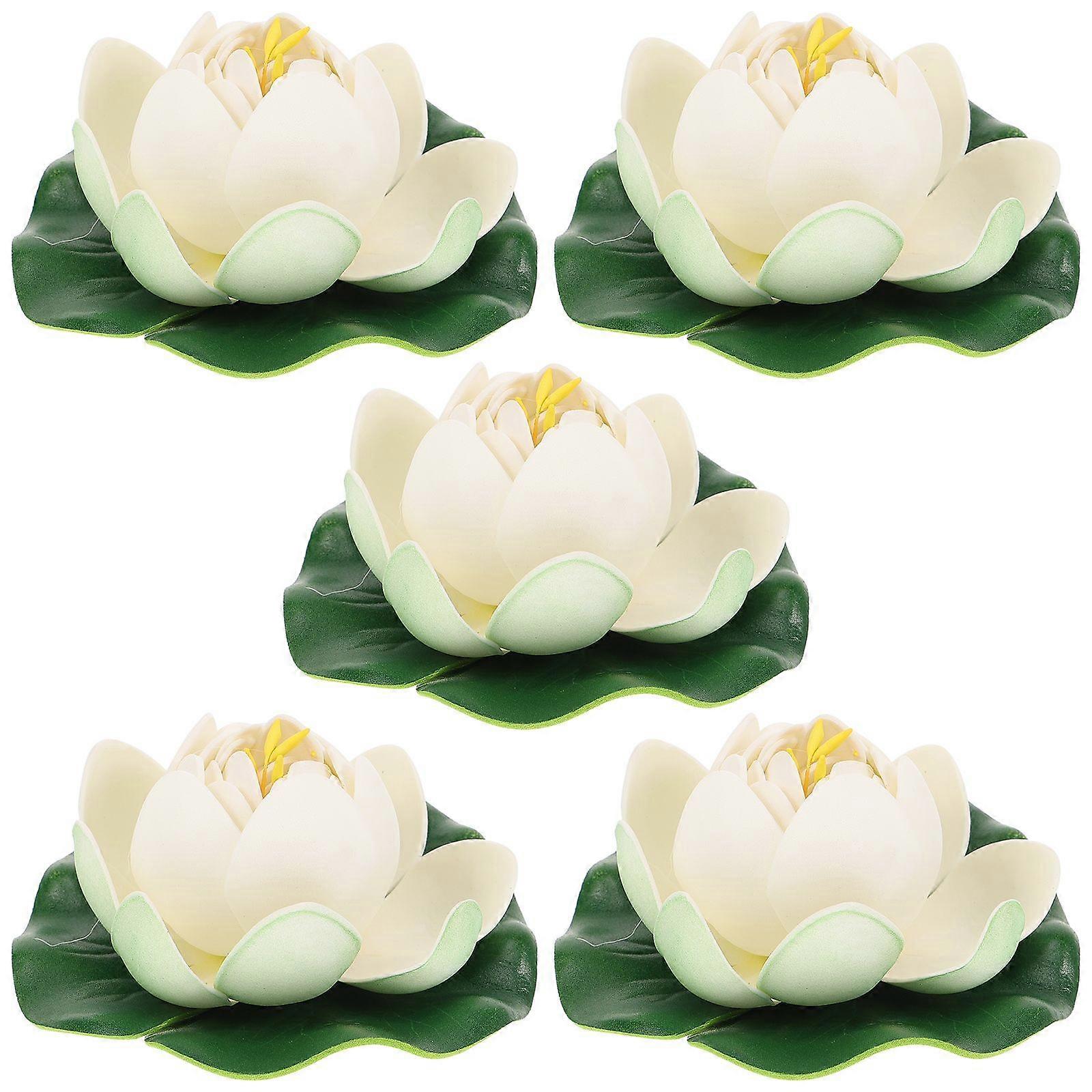 5Pcs Artificial Floating Lotus Decor Simulated Lotus Flower Decor Garden Lifelike Lotus Ornament