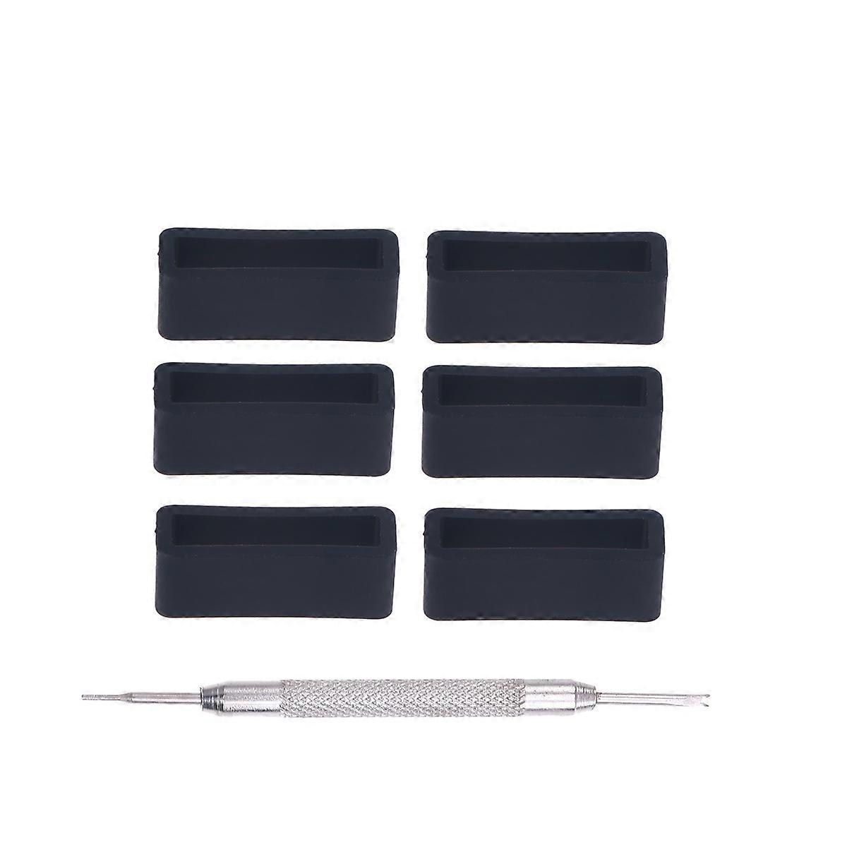 6 PCS 20mm Replacement Silicone Watch Band Strap Loops with Repair Tool Black