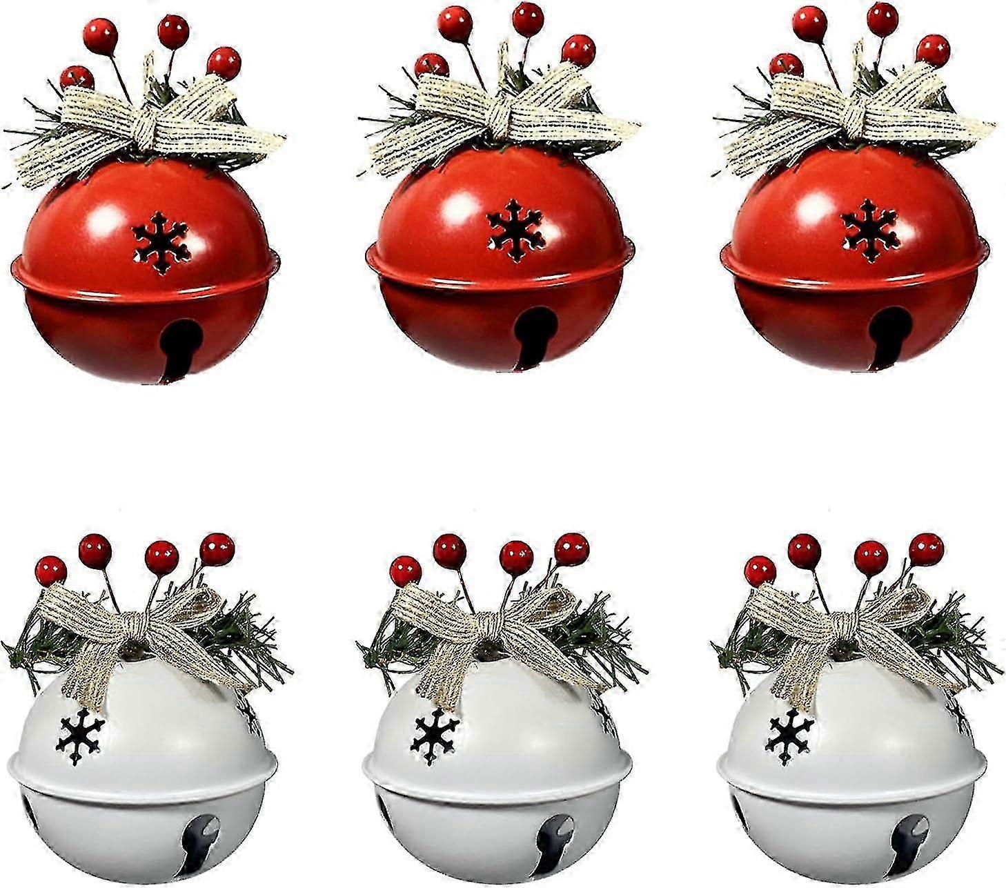 6 Pcs Christmas Jingle Bells Ornaments In Red White Green,christmas Tree Bells Pendant,christmas Holiday Party Supplies For Christmas Tree Decor,wreat