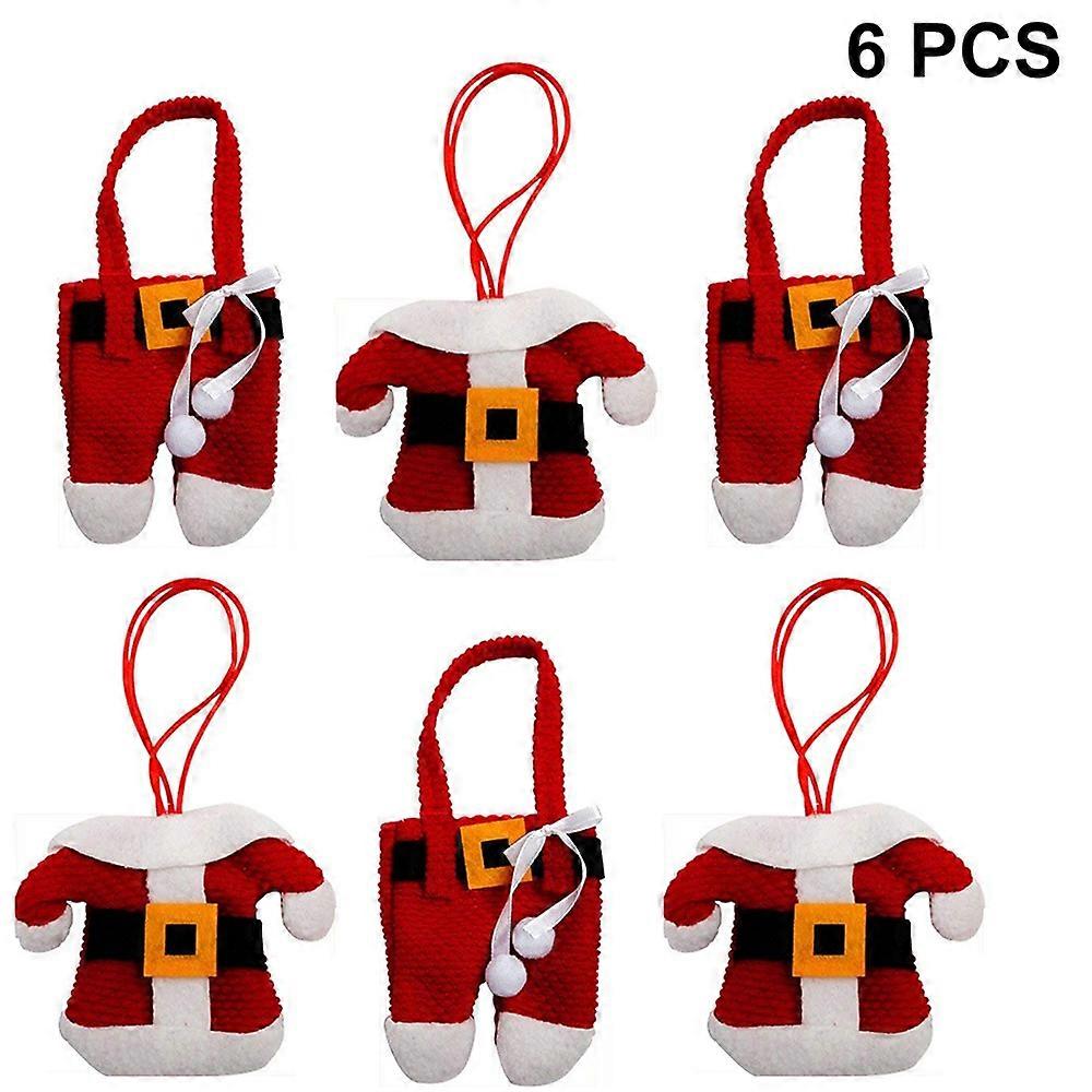 6 pcs Christmas Holders Pocket Set Santa Claus Suit Cutlery Knifes Forks Tablewa