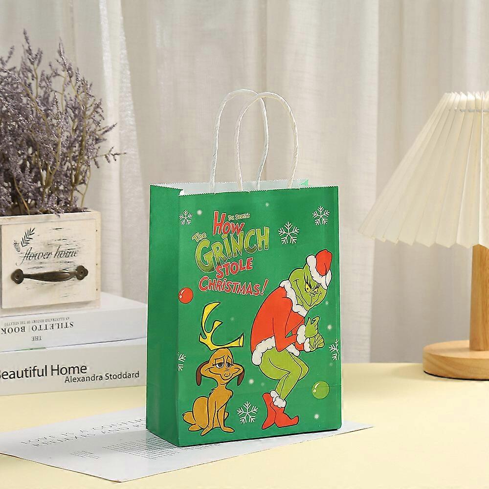 6Pcs Christmas Grinch Gift Bag Cartoon Handbag Christmas Eve Gift Box Packaging
