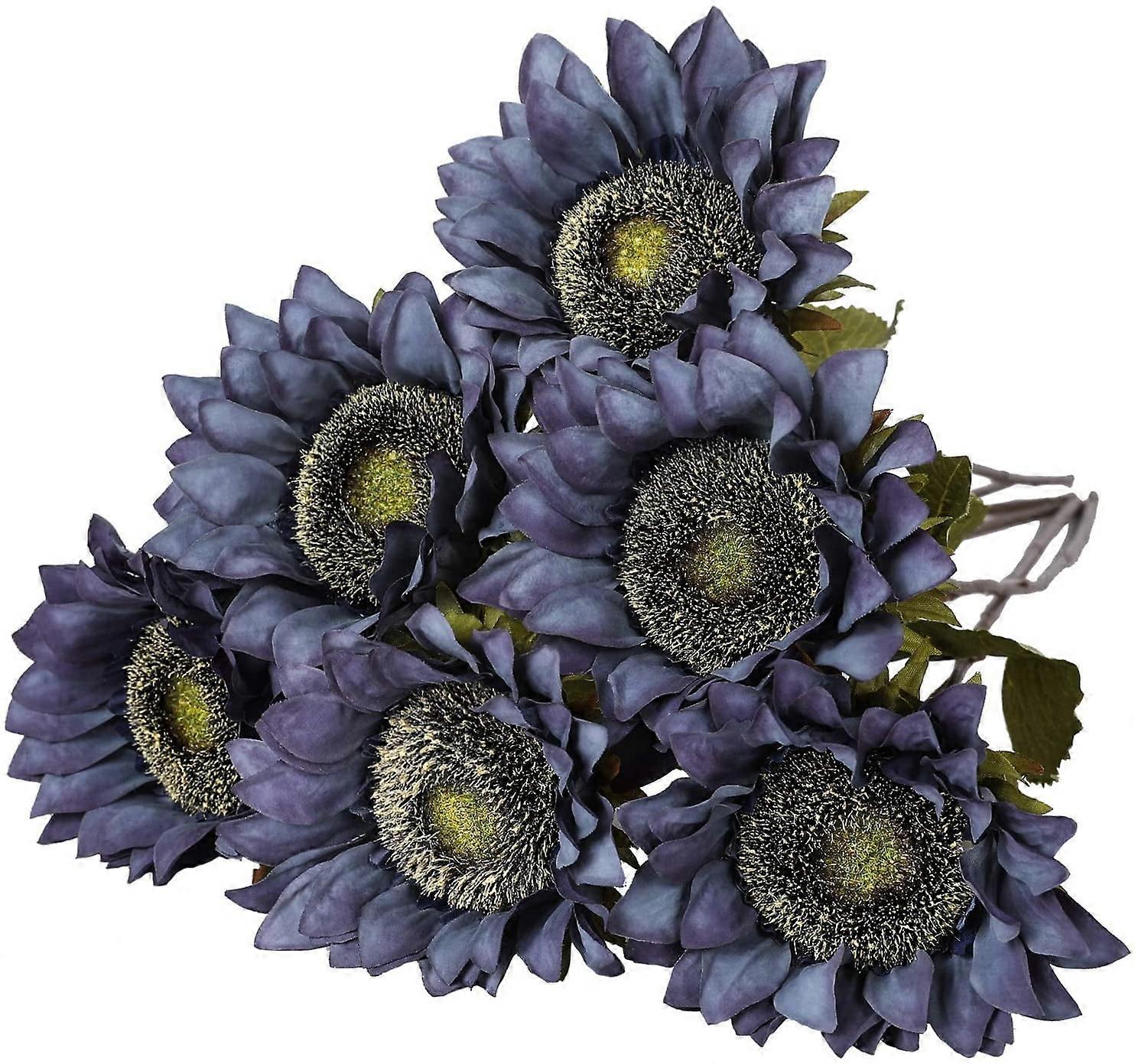 Sunflowers Artificial 6PCS Long Stem Silk Fall Bouquets, Realistic Fake Flowers for Wedding, Office, Home, Halloween Decor (Navy Blue)