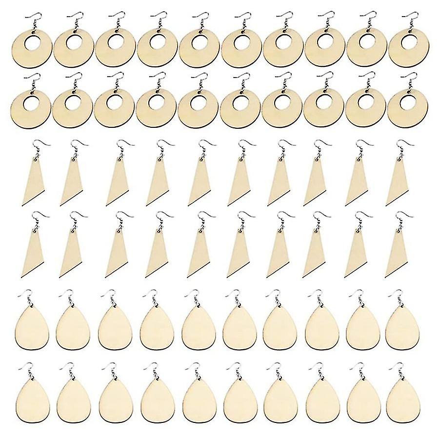 60pcs Unfinished Wood Blank Earrings With Holes And Earrings Hooks For Diy Jewelry Making