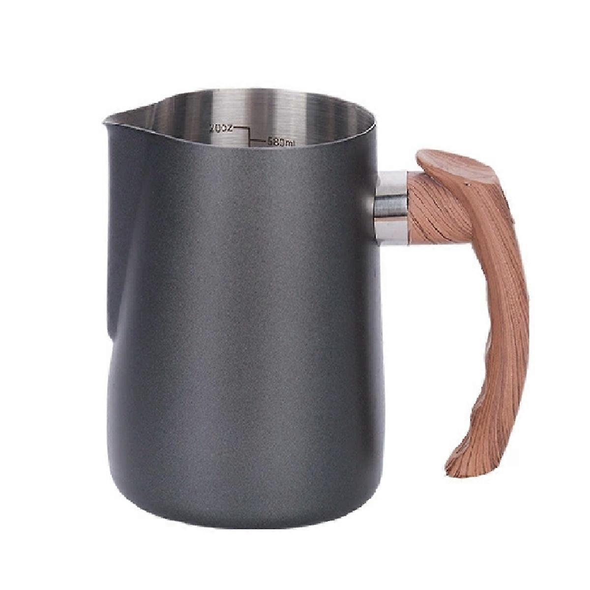 600ml Espresso Milk Frothing Pitcher Wooden Grain Handle Milk Jug Espresso Cup Cappuccino Pitcher Creamer Cup Black