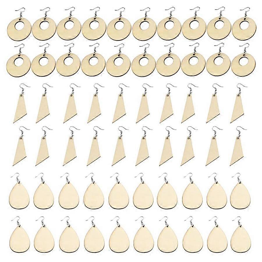 60Pcs Unfinished Wood Earrings with Holes and Earrings Hooks for DIY Jewelry Making