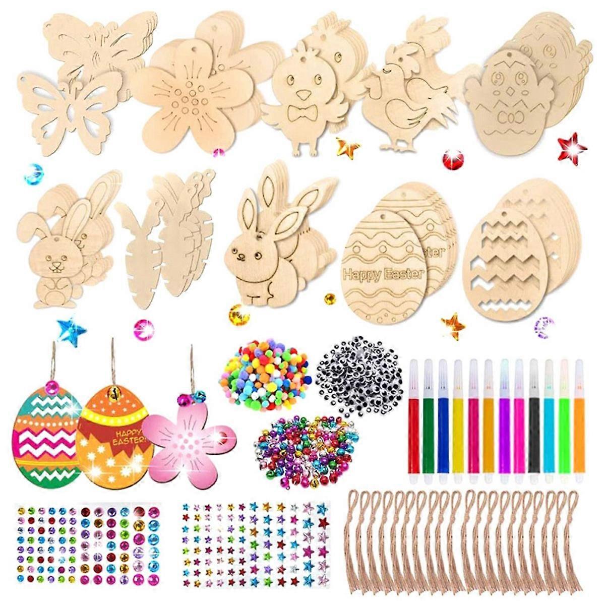 60Pcs Easter Kids Crafts Wooden Ornaments for Kid Valentines Day Card