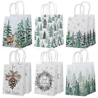 6/12/18pcs Christmas Gift Bags Elk Forest Xmas Tree Kraft Paper Candy Gift Packaging Bag with Handle New Year Party Decor Supply