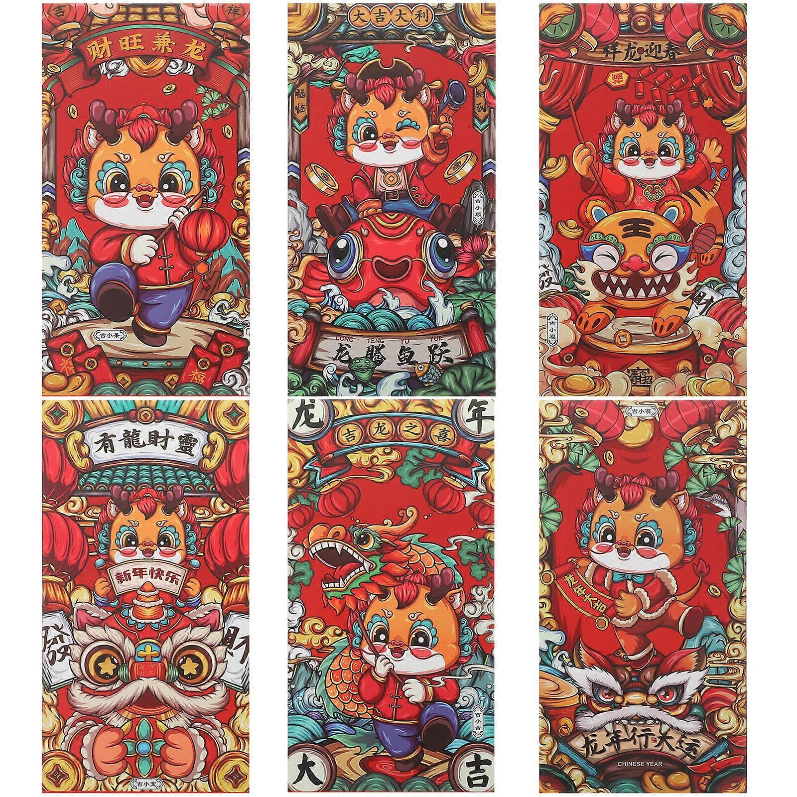 6pcs Chinese New Year Spring Festival Red Envelopes Dragon New Year Red Envelopes