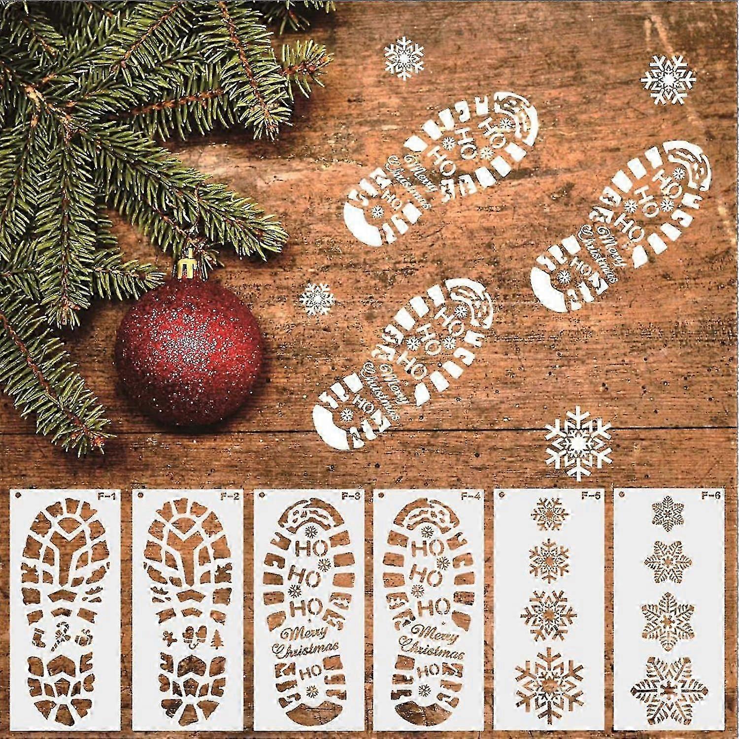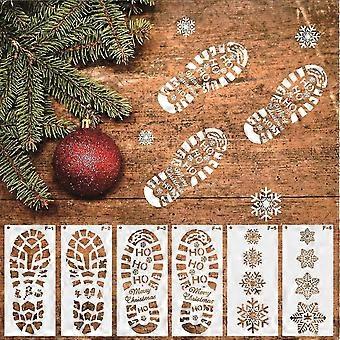 6pcs Santa Footprint Stencil For Painting, Christmas Snowflake Stencils Template Santa Footprint Reusable Drawing Template