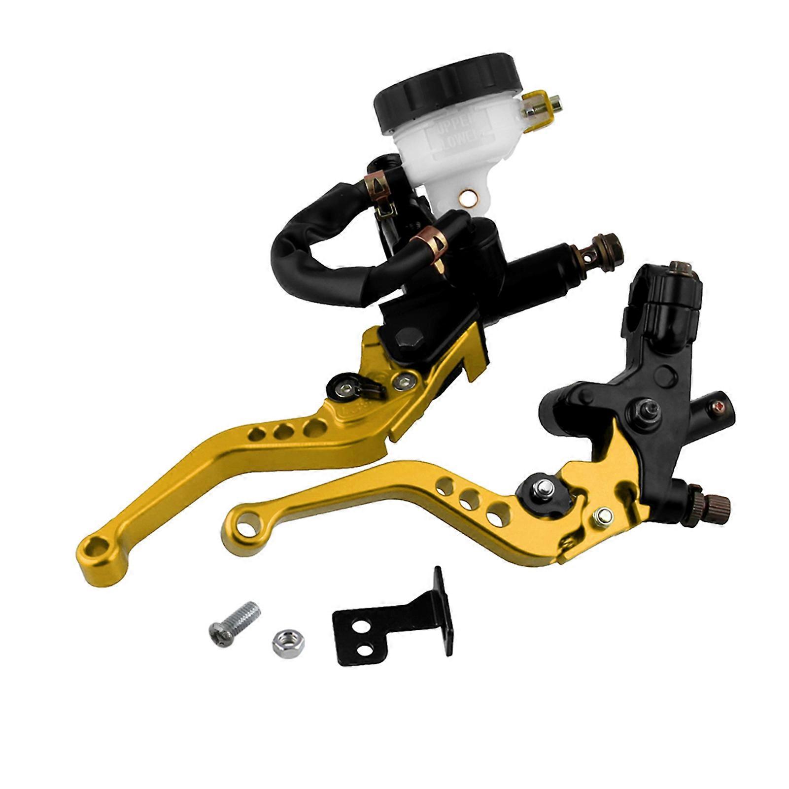 1、Brake Clutch Levers Master Cylinder Reservoir Set fit for Honda Kawasaki. 2、Housing is casted aluminum \u0026 piston is made of special stainless steel. 3、Levers are adjustable, precision machined pivot bore to ensure a perfect fit. Features: Brake Clutch Levers Master Cylinder Reservoir Set fit for Honda for for Kawasaki. The brake lever is more lightweight and than the primal one. Housing is casted aluminum & piston is made of special stainless steel. Levers are adjustable, precision machined pivot bore to ensure a perfect fit. 6 Position lever adjustment stainless steel fasteners. Universal fit for most Sport bike, Street bike, Scooter, Dirt Bike with 7/8" (22mm) Standard Handle bar. Specifications: Material: CNC Aluminum Color: Black, Red, Gold, Blue, Green, Silver (optional) Item Size: shown as picture Package Size: 27*9.5*9.5cm / 10.63*3.74*3.74in. Package Weight: 700g / 24.69oz Package List: 1 * Pair of Brake & Clutch Master Cylinder Levers (Left & Right) 1 * Pair of Brake & Clutch Master Cylinder Levers (Left & Right)