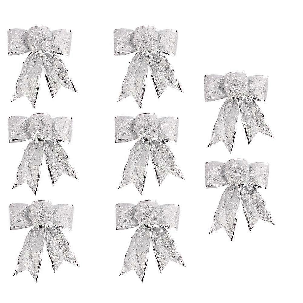 8 Pcs Glitter Christmas Wreath Bow Christmas Tree Ornaments Bows For Christmas Party Decor