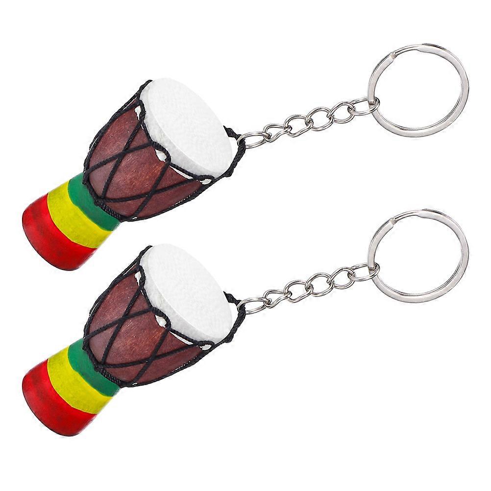 African Drum Keychain Decoration for Decor Featuring 2Pcs Pendant