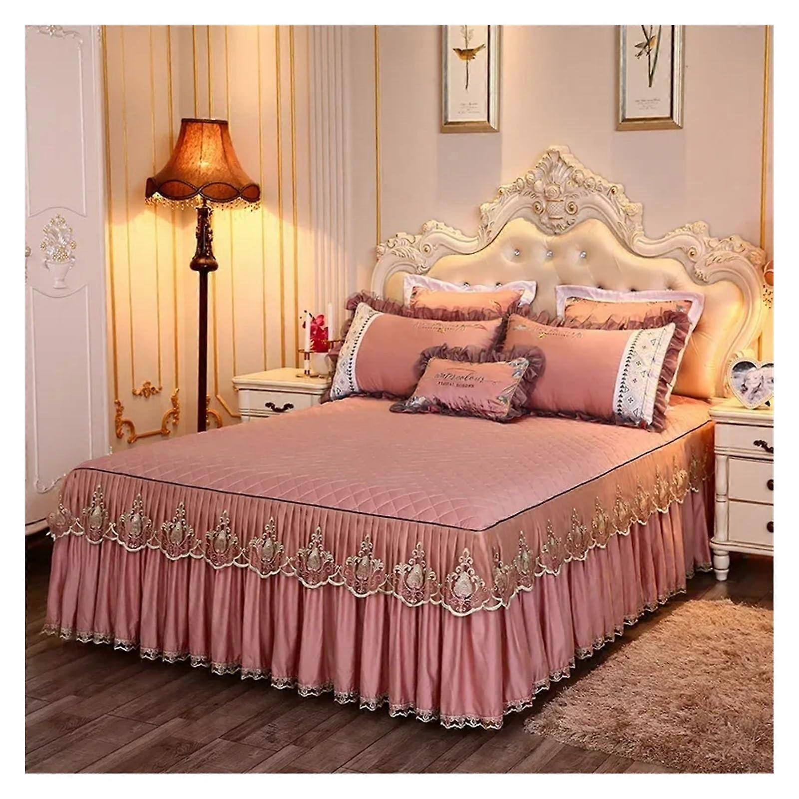 Bed skirt, lace cover, valance, cotton clipon, thickened, nonslip, 1.5m/1.8m (Dark pink)