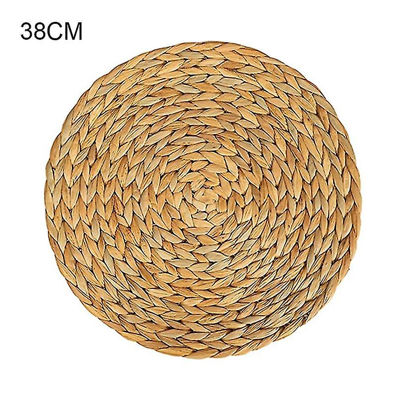 1pc Table Mat Handmade Water Hyacinth Woven Placemat Round Braided Mat Heat Resistant Hot Insulation Anti-skidding Pad