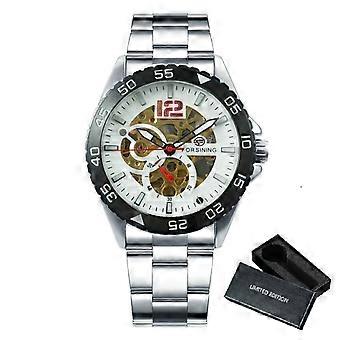 Automatic Mechanical Watch For Men Classic Skeleton Watches Mens 2023 Luxury Steel Strap Rotatable Bezel Wrist Watch Gift Reloj