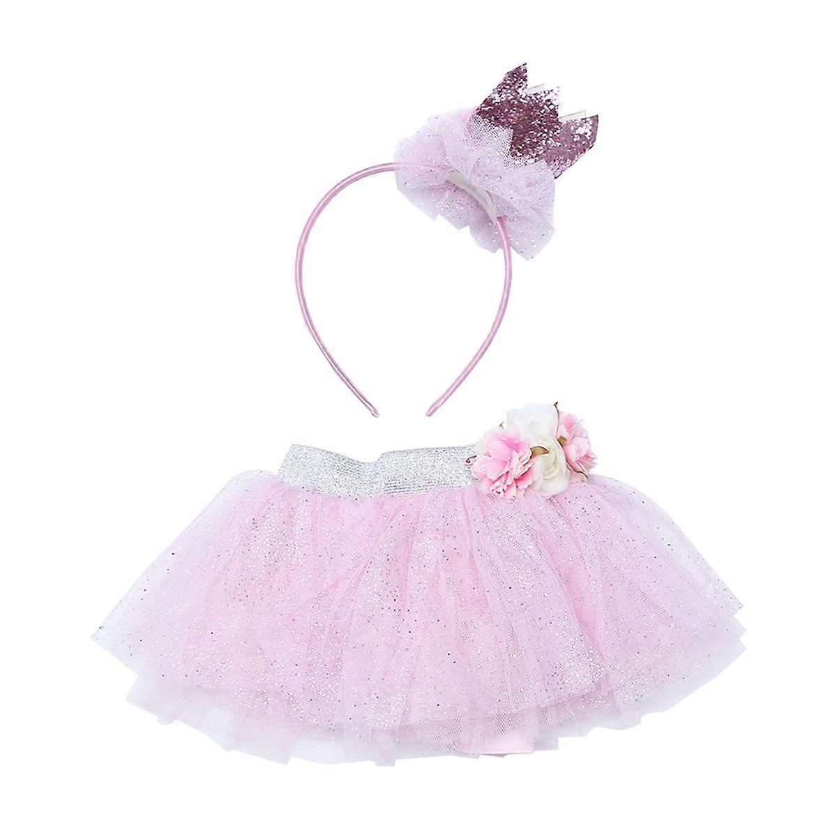 Baby Tutu Skirt and Headband Set Beautiful Mesh Skirt Performance Costume for Girls Tollders (Pink)