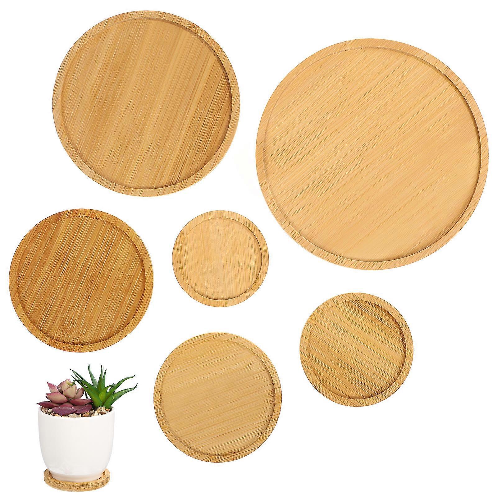 Bamboo Plant Pot Tray Round Flowerpot Base Plate for 18Pcs Set