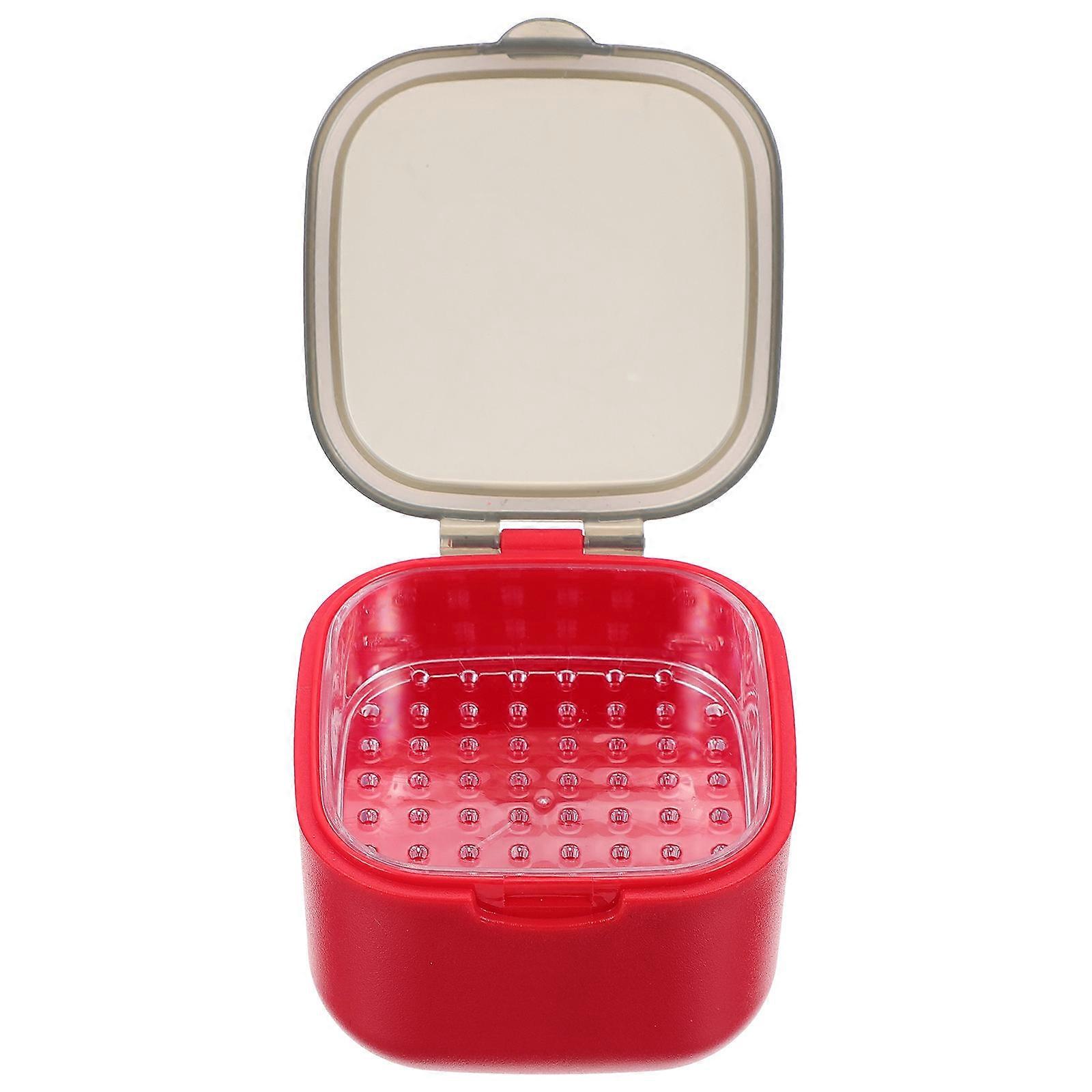 Braces Storage Box for Denture Holding 2Pcs Red Portable Tooth Container
