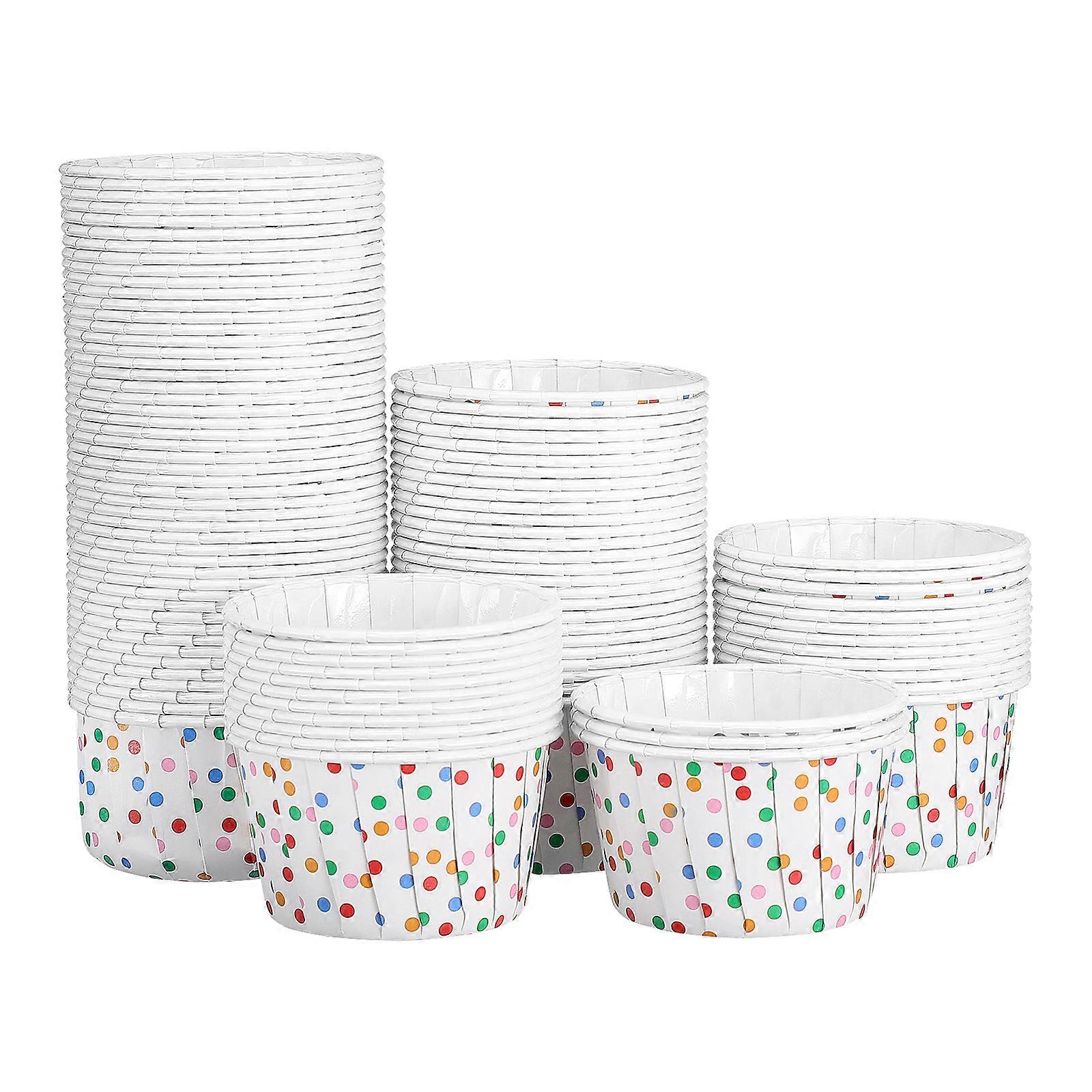 Cabilock 100pcs Polka Dot Paper Treat Cups Disposable Dessert Bowls for Sundae Cake Ice Cream