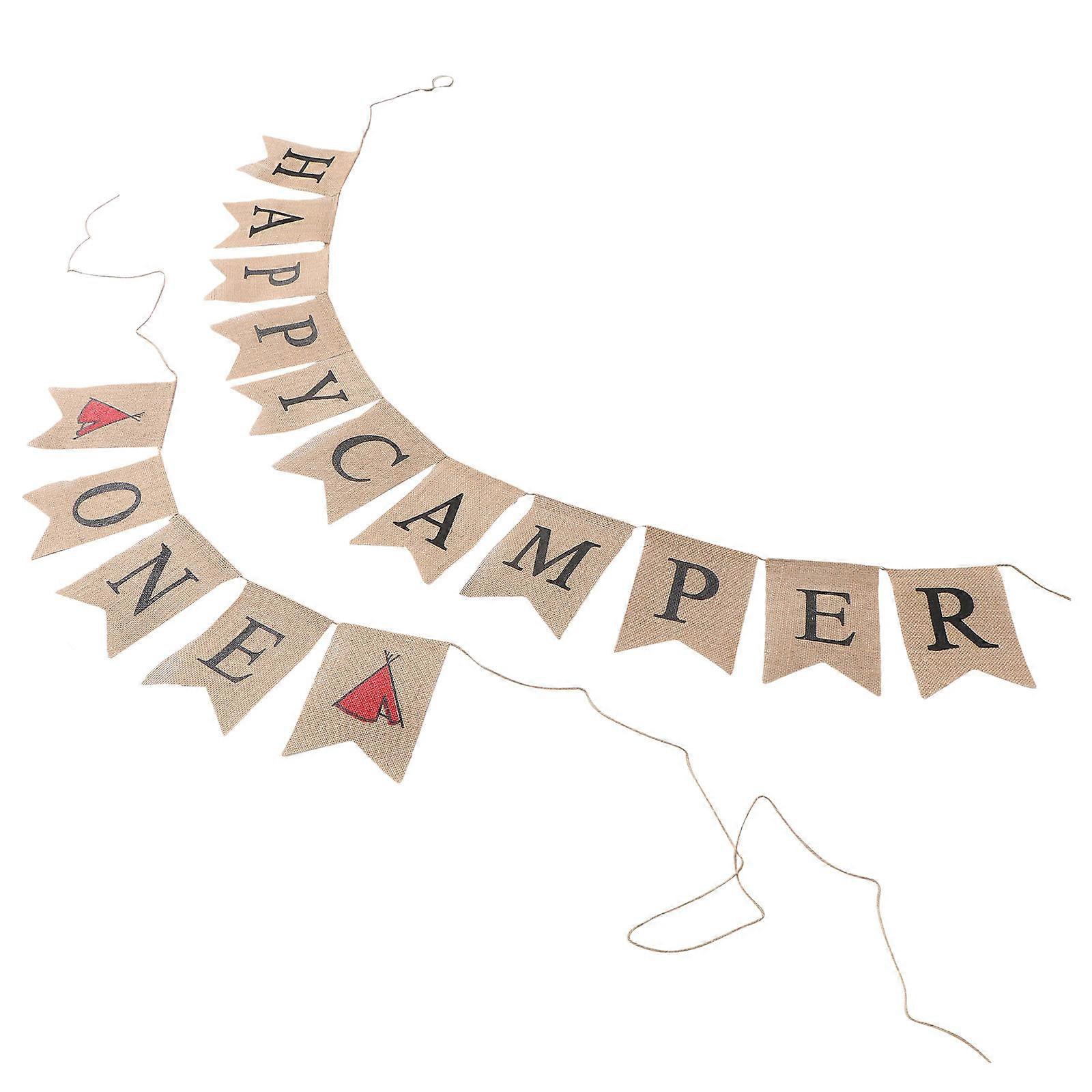 Camping Banner Pennant Flags On A String Swallowtail Party Decoration Theme Party Style Linen 1Set