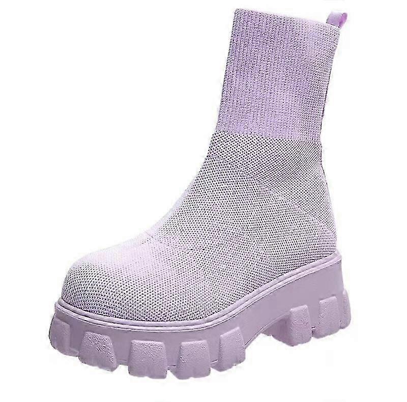Shoes Woman Boots Knitted Sock Boots Women's Thick-soled Short Tube Breathable Plus Size Boots Platform Booties Heels 2025