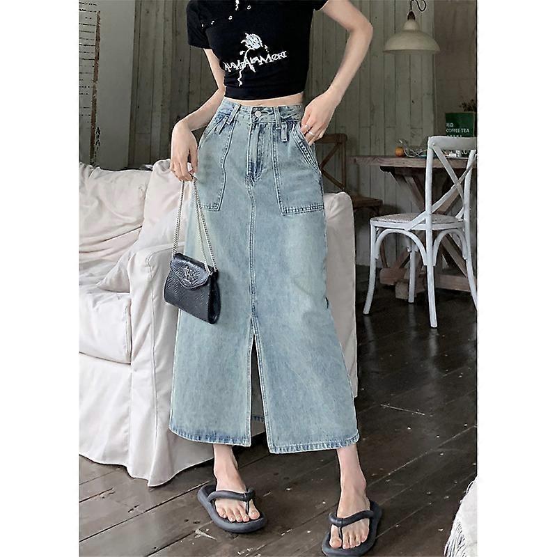 Cotvotee Denim Skirts for Women 2023 New Fashion Vintage High Waisted Split Midi Skirt Chic Casual Solid Pockets Loose Y2k Skirt