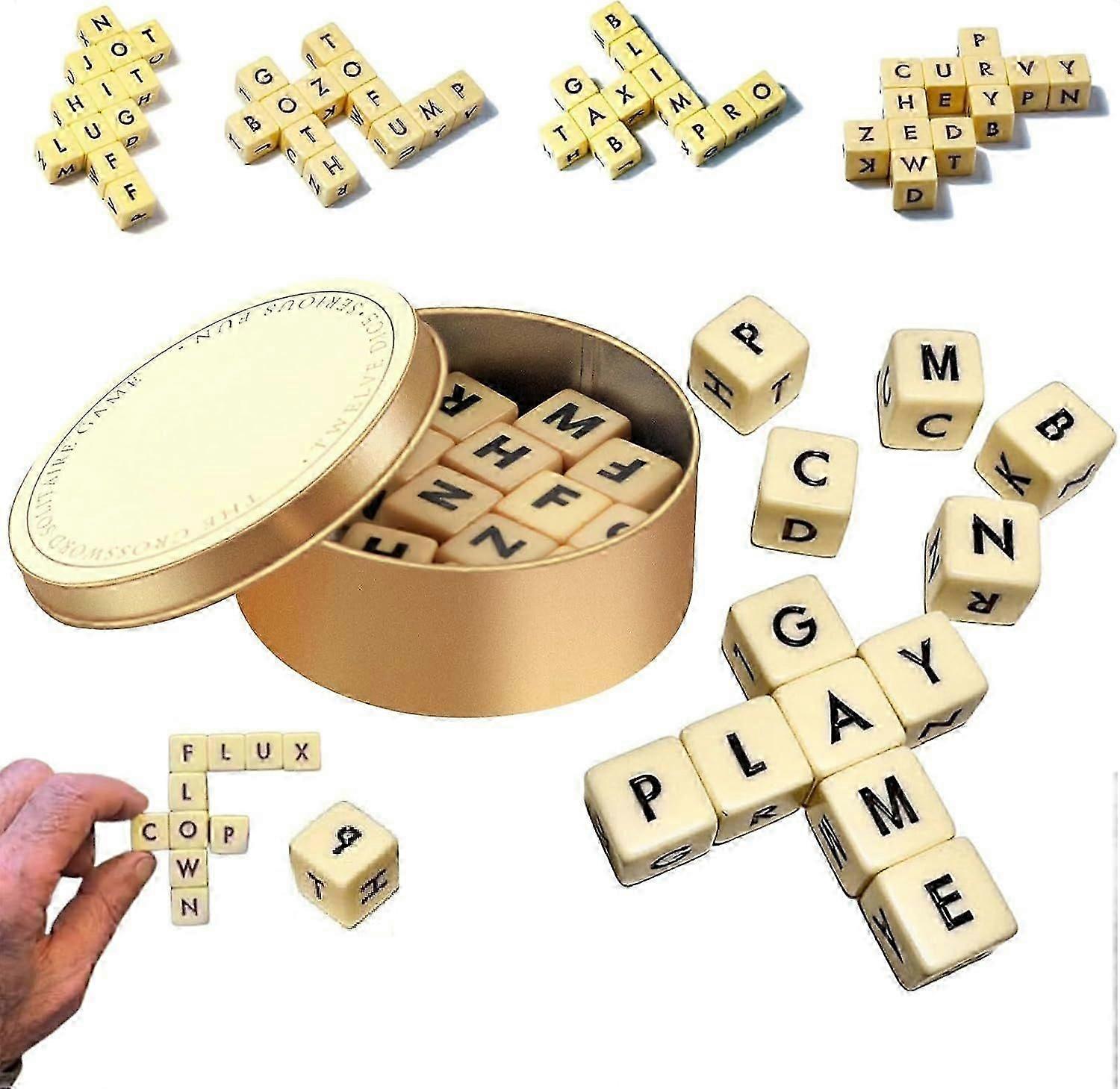 Crossword Solitaire Game, Fun Word Combination Game Dice, Crossword Solitaire Dice Game, 12 Wooden Letter Dice Sete