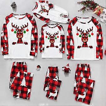 Family Matching Adult Kids Baby Long Sleeve Christmas Elk Print Check Pajamas Set Xmas Sleepwear Nightwear Pjs