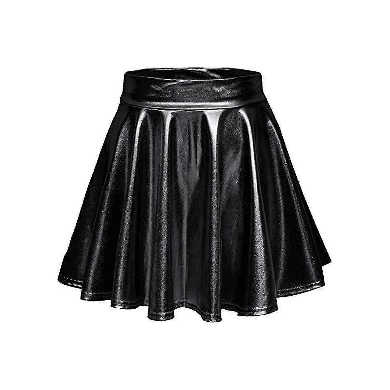 Gleaming Metal Flared Skirt with High Waist and Pleated Design for Women Sizes S to XL