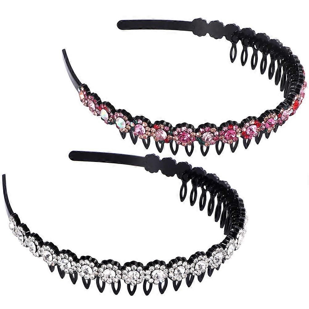 Nonslip Rhinestones Headband for Women Daily Wear Assorted Color Comfortable 2Pcs