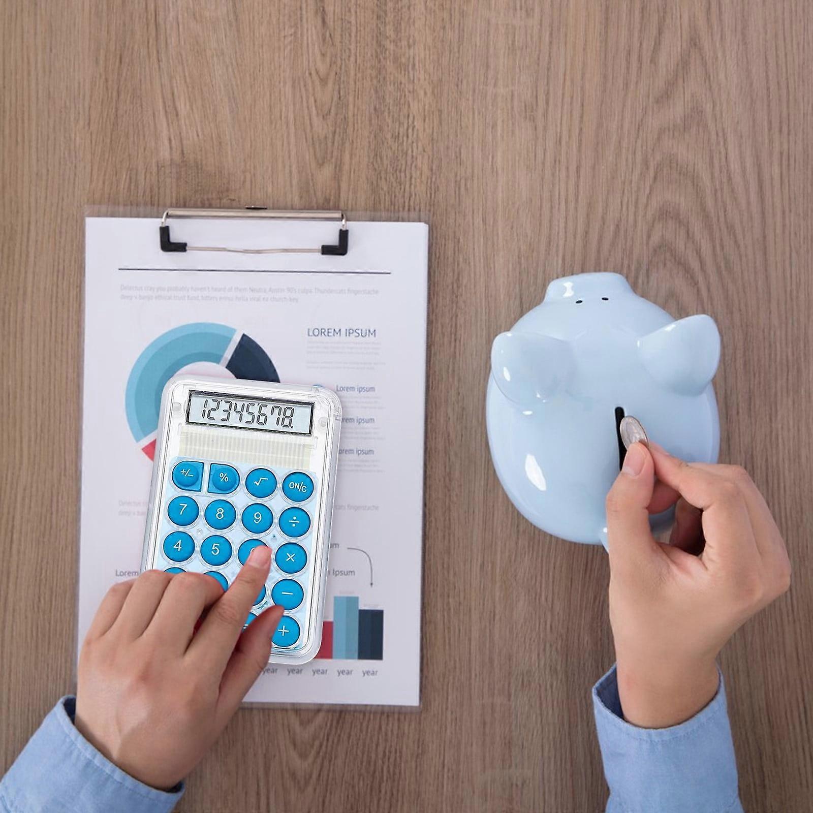 Cute Transparent 8-Digit Calculator for Students, Standard Function Desktop Electronic Calculator, Mini Size 5.4x0.8x8.6cm