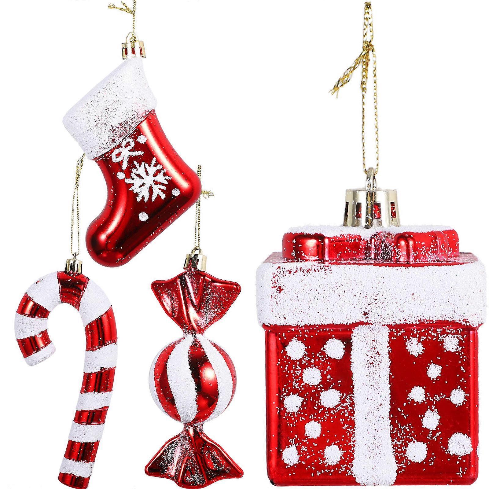 Decorative Xmas Scene Layout Ornaments 12 Pcs Plastic Christmas Tree Pendant For Theme Parties