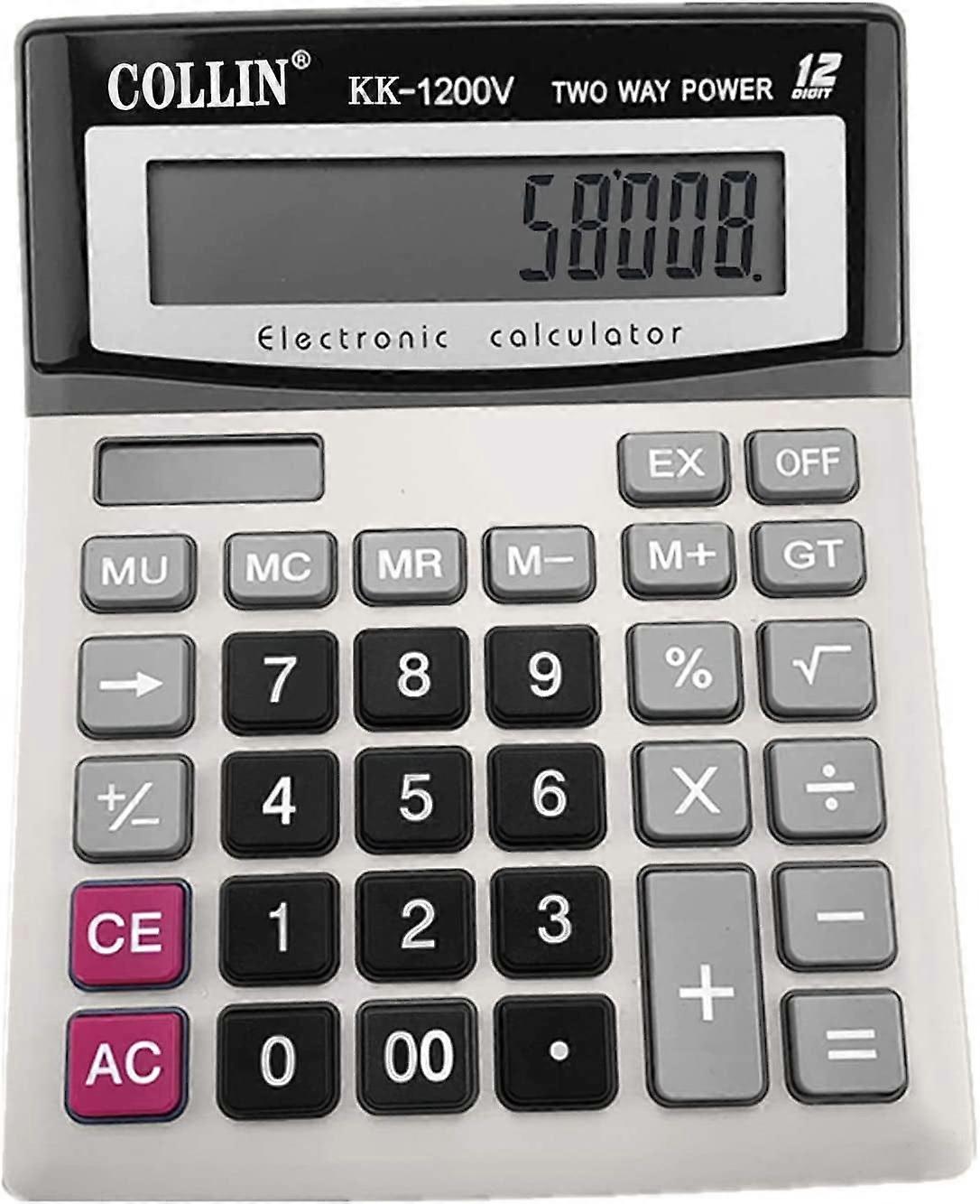 Desk Calculator, 12-Digit Solar y Office Calculator with Large LCD Display Big Sensitive Button, Dual Power