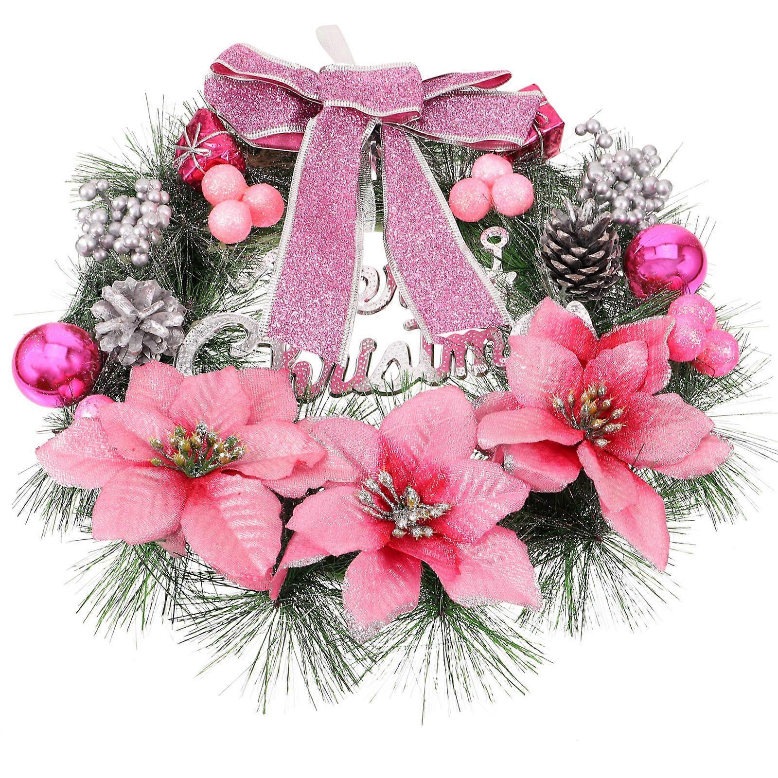 Fashion Christmas Wreath Artificial Pine Garland for Decoration 2Pcs Pink