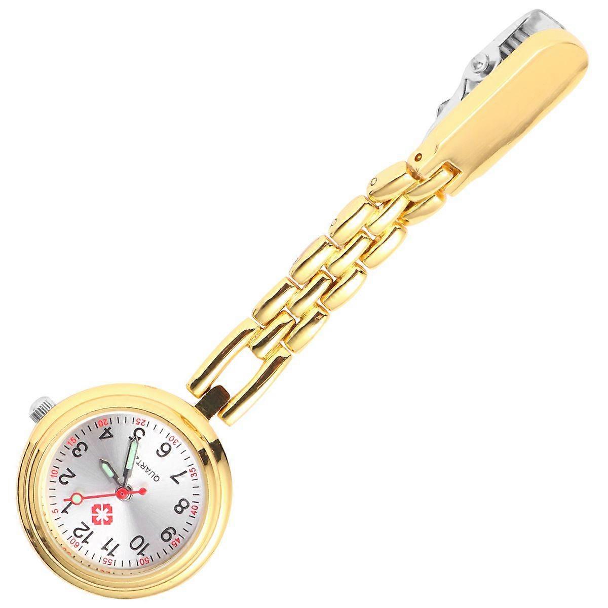 Fashion Pocket Watch Creative Nurse Watch Stylish Quartz Watch Simple Clip Buckle Hanging Watch (Golden