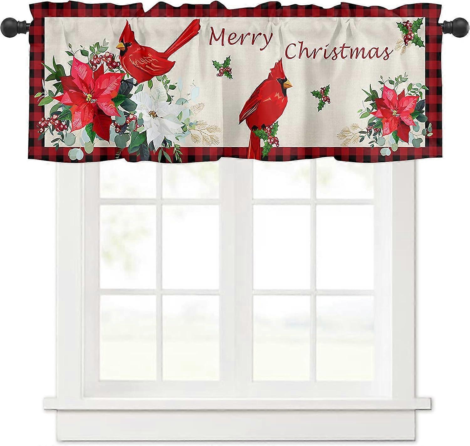 Dww-1 sheet (54 x 18 inches) Christmas Red Valance Curtains Red Cardinal Bird Kitchen Valance Rod Pocket Berry Water Plaid Short Top Curtains for Wint