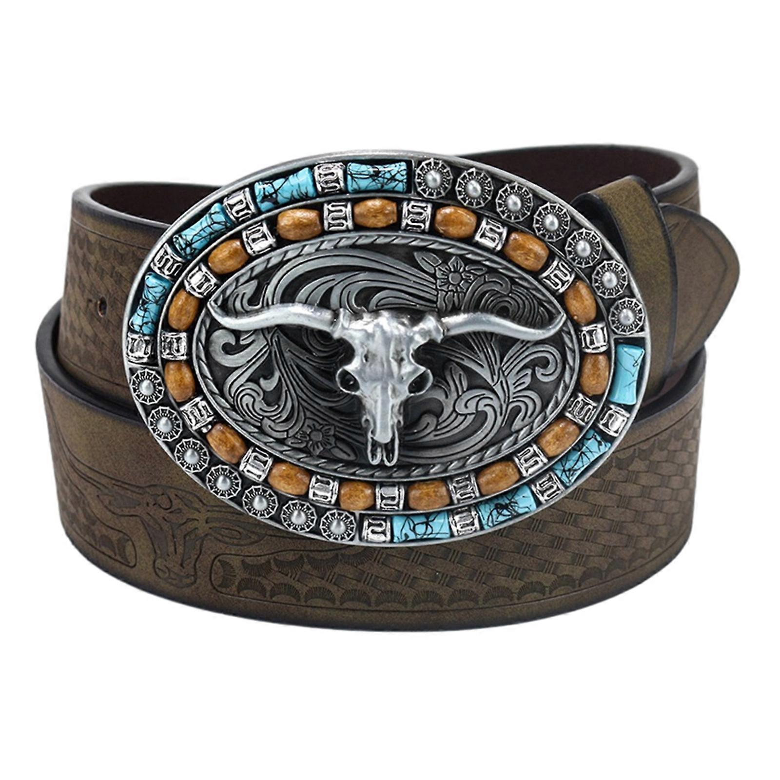 Ethnic Style Man Waist Belt with Relief Bull Head Buckle Adjustable Buckle Waist Belt All-Match Dresses Coat Waistband