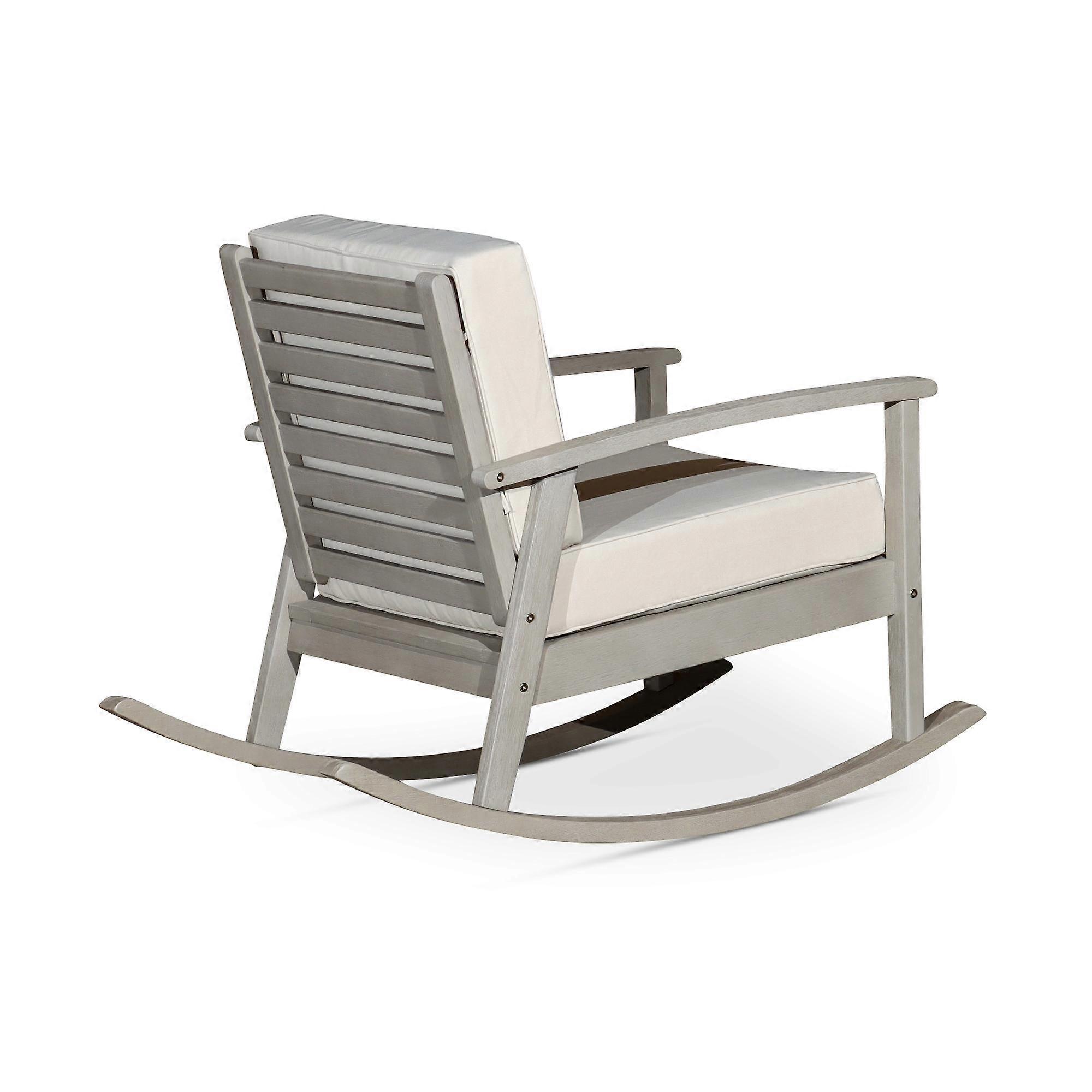 Eucalyptus Rocking Chair with Cushions, Driftwood Gray Finish, Sage Cushions