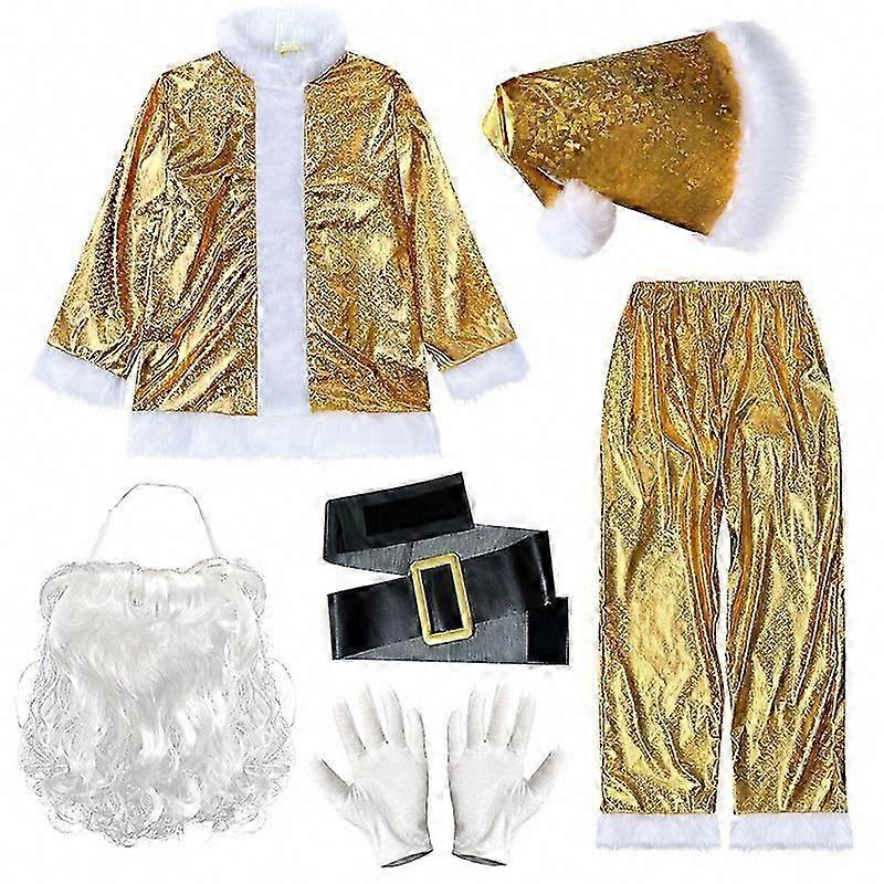 European Fantasy Gold Santa Claus Costume Set for Men, Christmas Party Performance Outfit