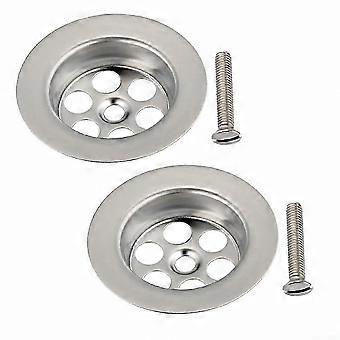 Silver 70mm Bath Plug with Screw and Drain Strainer for Bathtub Sink Shower, 2-Pack Stainless Steel Replacement