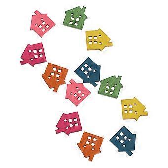 Wooden Buttons Two Holes DIY Colored House Pattern 50Pcs Pack