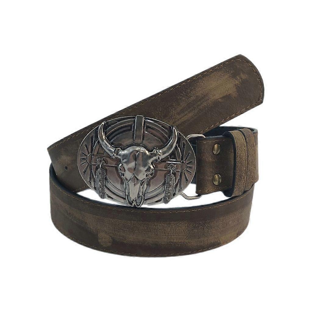 Carved Buckle Belt Adult Bohemian PU Belt Vintage Bull Head Buckle Waiststrap