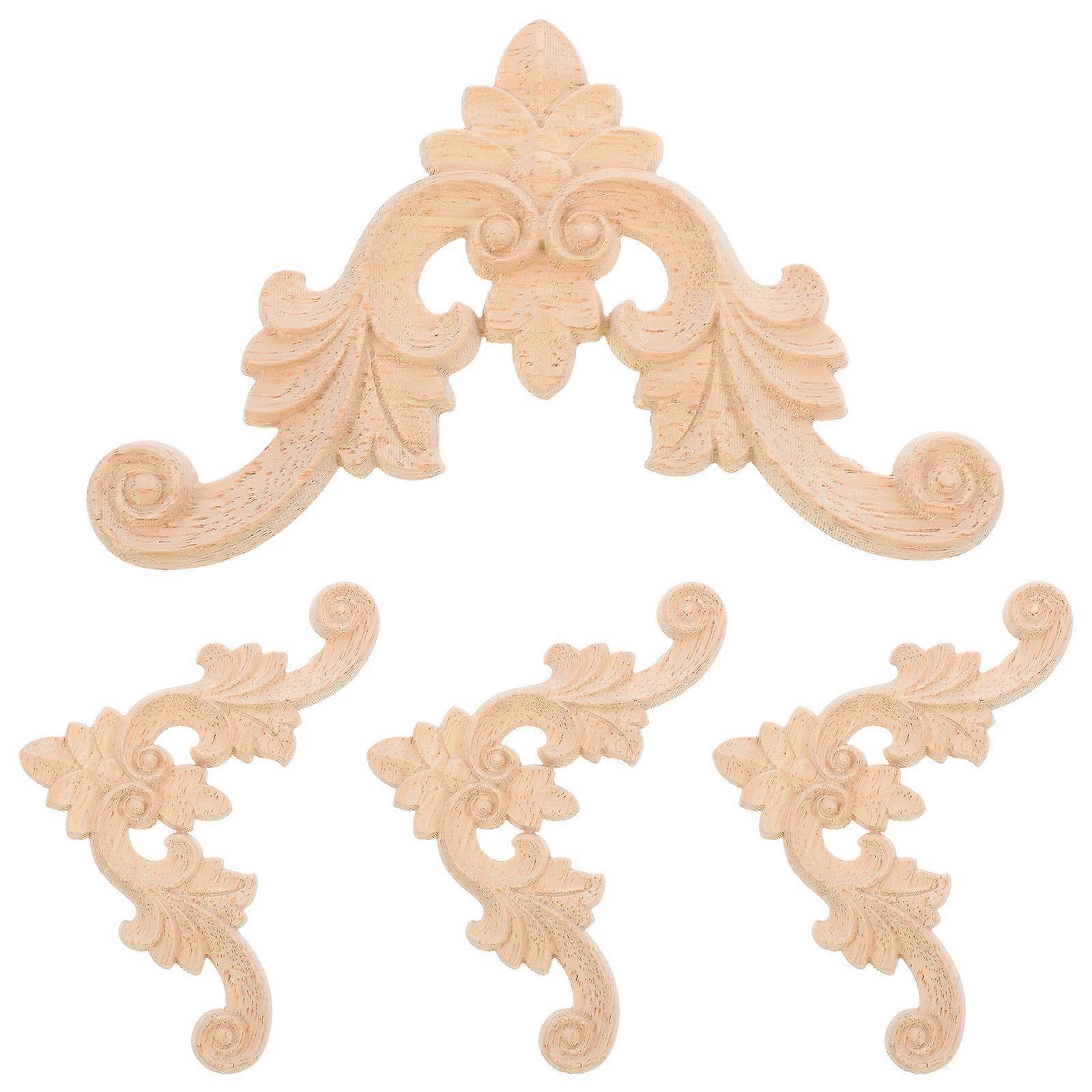 Carved Wooden Ornaments Solid Wood Corner Flowers for Furniture 8Pcs