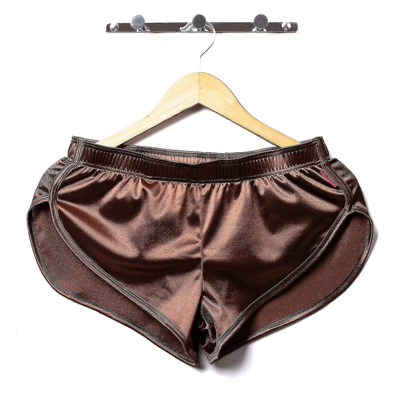 Underwear Boxers Men"s Sexy Boxer Trunks Smooth Satin Pajamas Shorts Side Split Lounge Boxershorts Home Sleep Bottoms