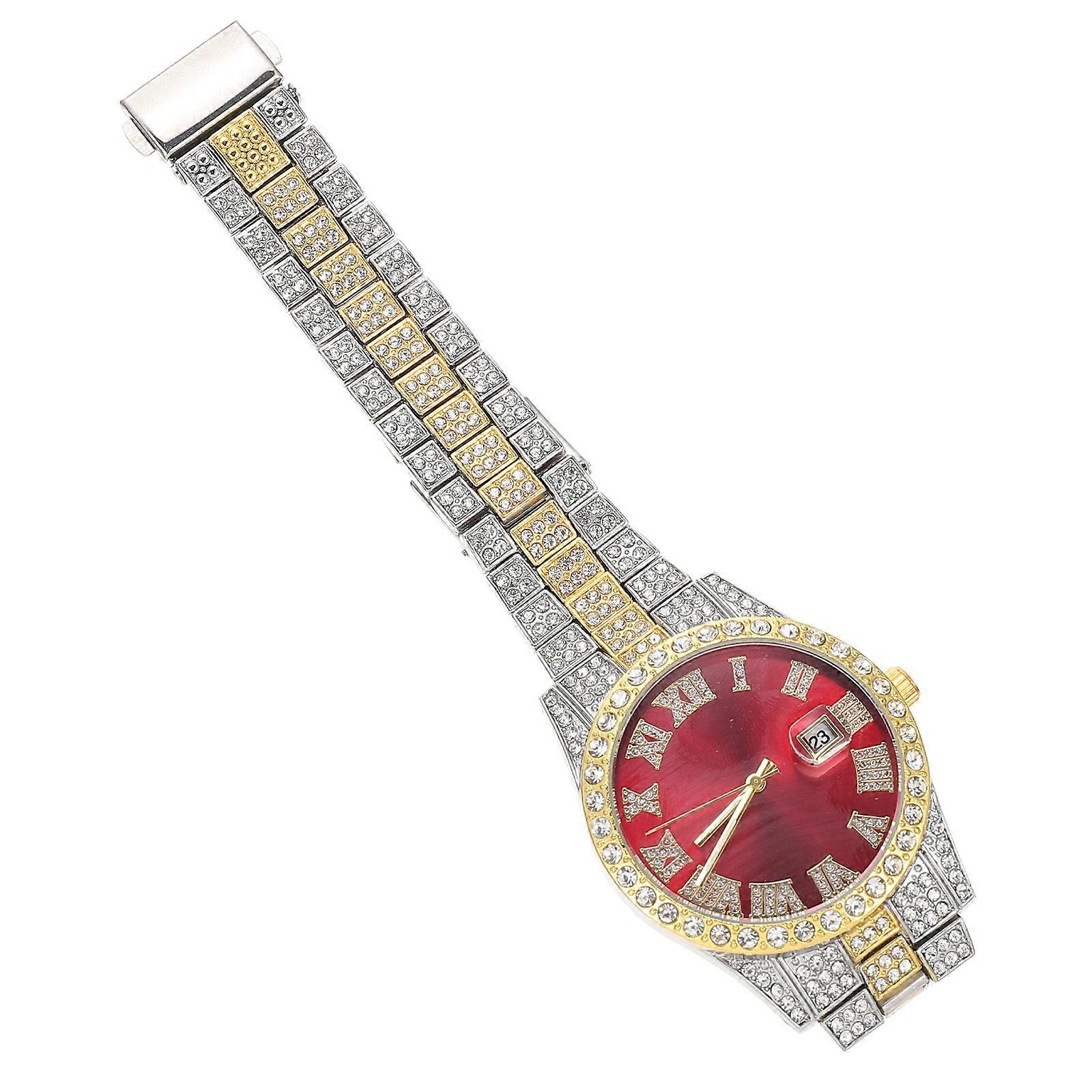 Men Watch Decorative Diamond-Encrusted Wrist Watch Ornament 4Pcs Pack