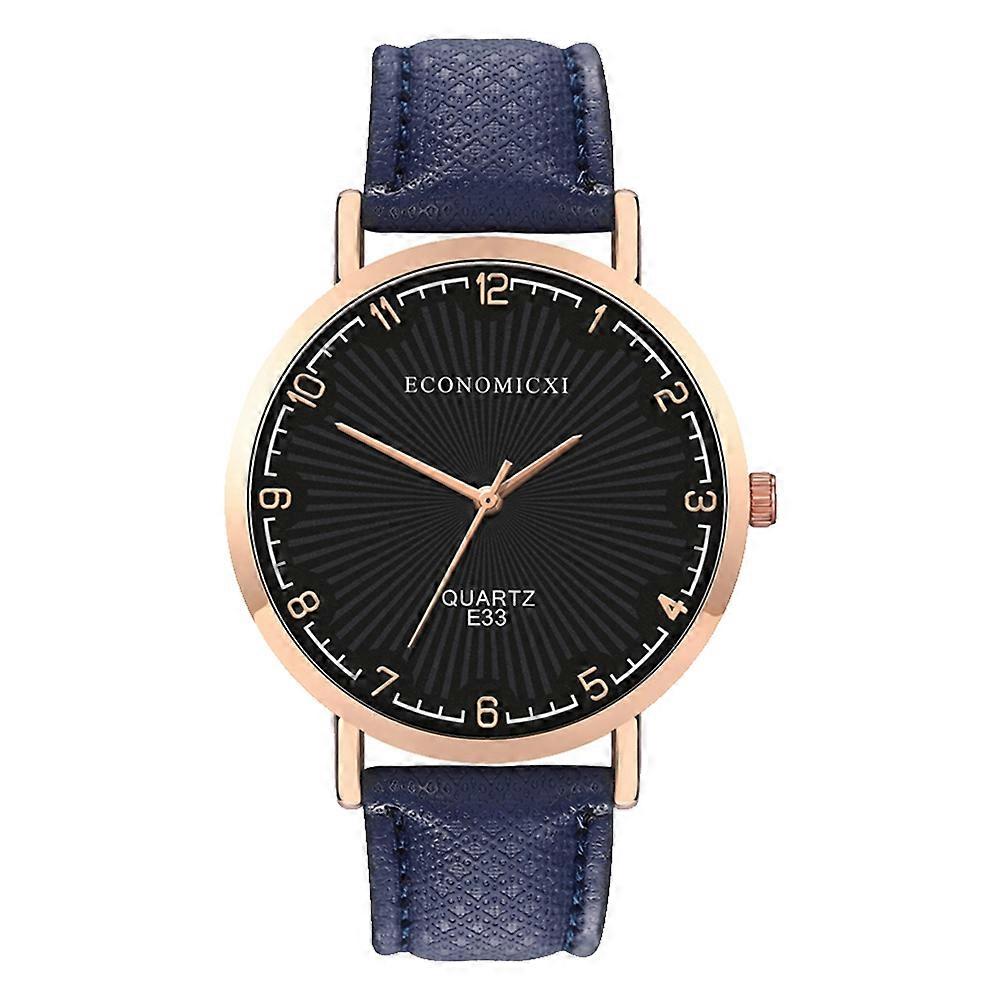 Men Women PU Strap Round Dial Watch Delicate Wristwatch Quartz Wrist Watch(Black Blue)