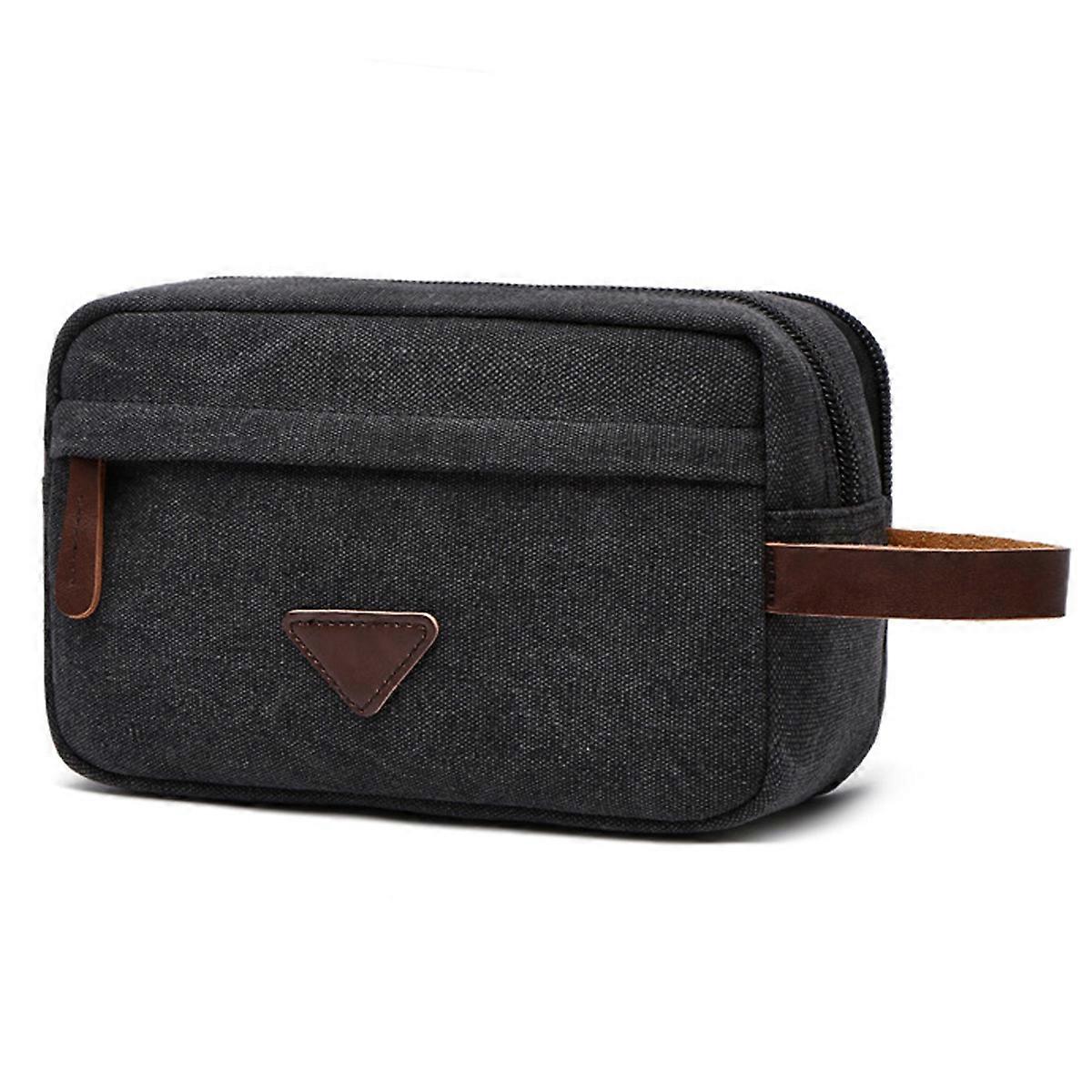 Men's Travel Toiletry Bag, Double Compartments, Canvas Leather Organizer
