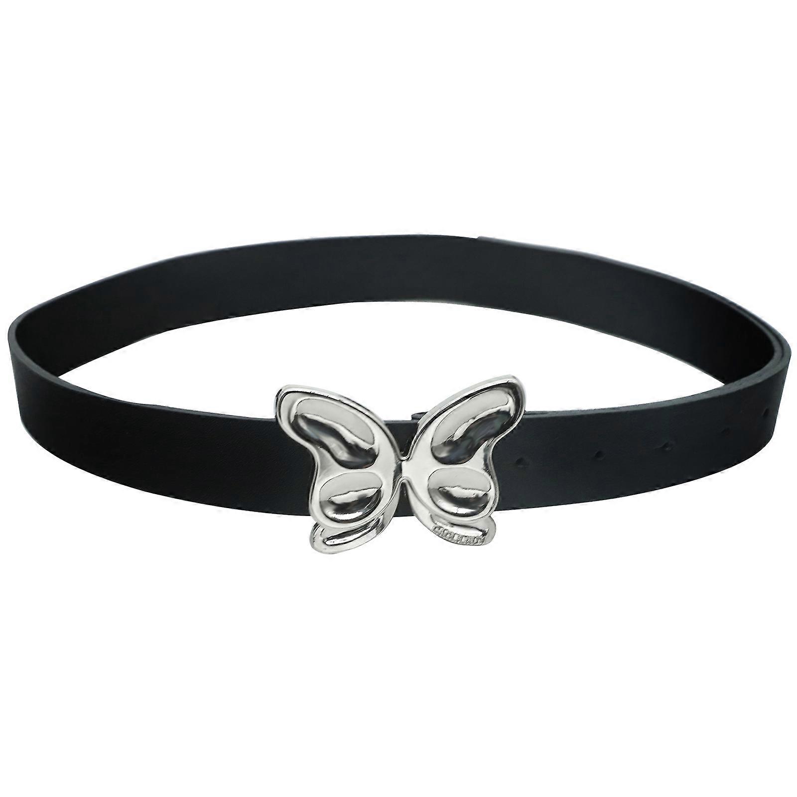 Delicate Adult Waist Belt with Alloy Butterfly Buckle Y2K Waistband Jeans Waist Belts for Vintage Teens Adjustable Belt Black